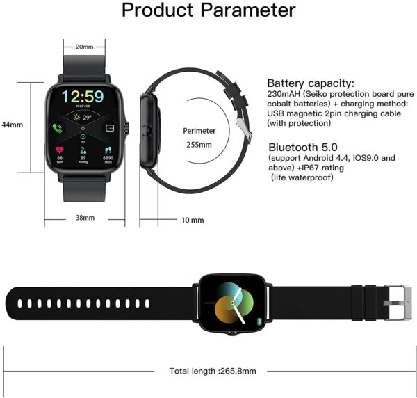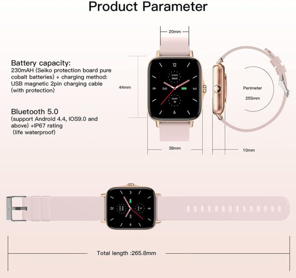 • Smart Watch 2021(Call Receive/Dial), 1.72 in HD Full Touch Screen Smartwatch Fitness Tracker with Call/Text/Heart Rate/Blood Pressure/Sleep Step Tracking, Fitness Watch for Android/iOS, Women Man