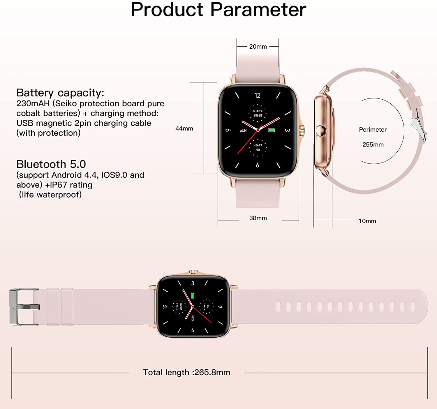 Supported ApplicationFitness Tracker, Weather, Sleep Monitor, Messages, Phone, Alarm, GPS, Heart Rate Monitor