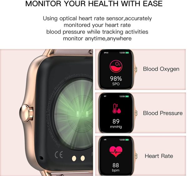 Smart Watch 2021(Call Receive/Dial), 1.72 in HD Full Touch Screen Smartwatch Fitness Tracker with Call/Text/Heart Rate/Blood Pressure/Sleep Step Tracking, Fitness Watch for Android/iOS, Women Man